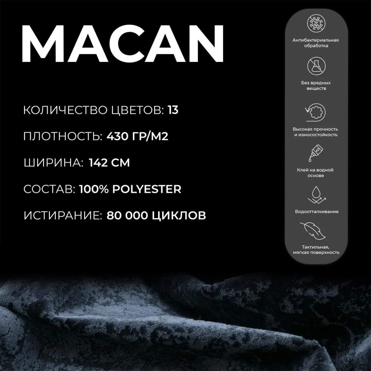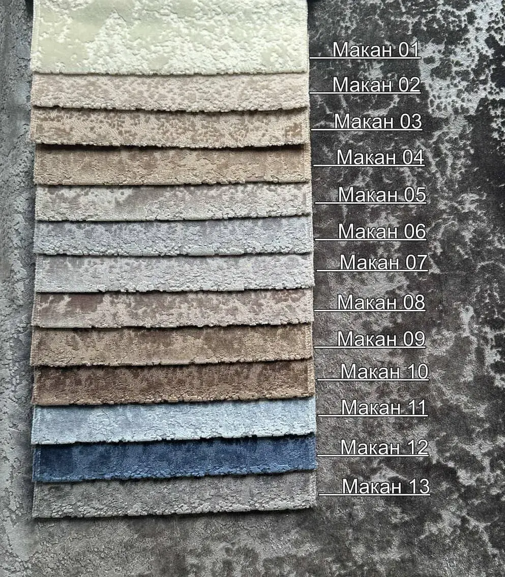 Макан — мебельная ткань, совмещающая стойкость к истиранию и утонченный жаккардовый рисунок. Элегантная цветовая гамма, отобранная дизайнерами, создает атмосферу покоя и роскоши. Подходит для обшивки диванов, кресел и иной мебели, где важны красота и функциональность.